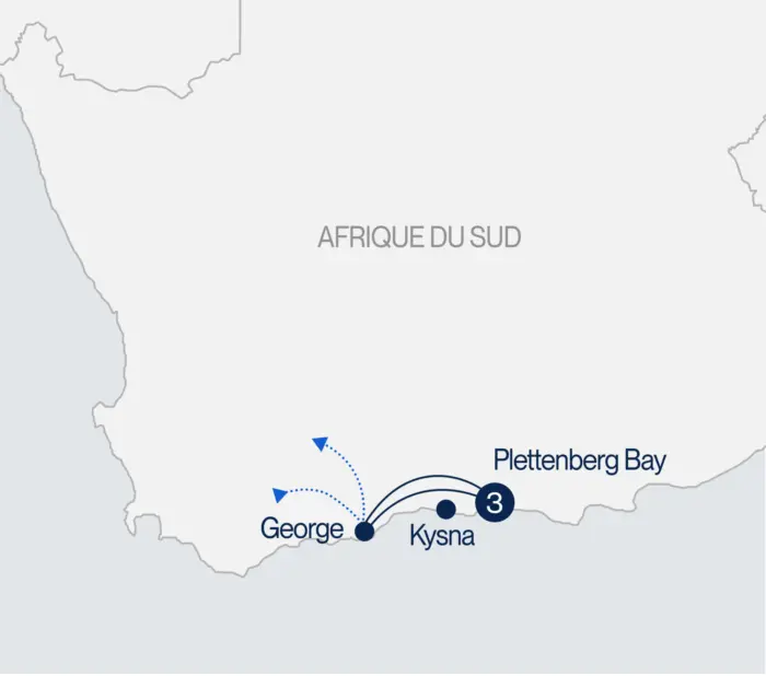 Accueil à l’aéroport de George par votre chauffeur anglophone. Transfert privé vers le Robberg Beach Lodge situé en bord de mer (durée 1h30). Ce tronçon de route pittoresque fait partie de la Route des Jardins. Elle traverse des paysages côtiers magnifiques, des forêts impressionnantes et la jolie ville de Knysna. Installation pour 3 nuits.