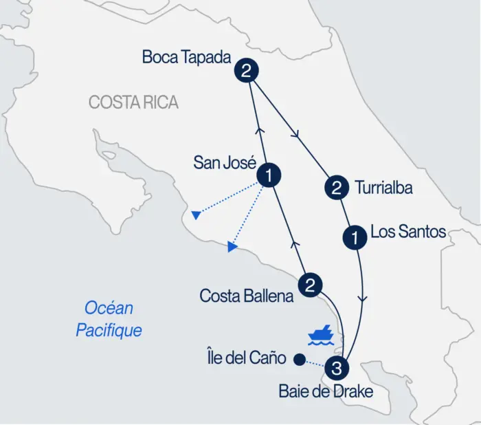 Arrivée à San José et transfert privé à votre hôtel. Une fois bien installé, vous recevrez un appel téléphonique d’un représentant local francophone qui vous fournira les informations nécessaires ainsi que les derniers conseils à savoir pour profiter pleinement de vos vacances.