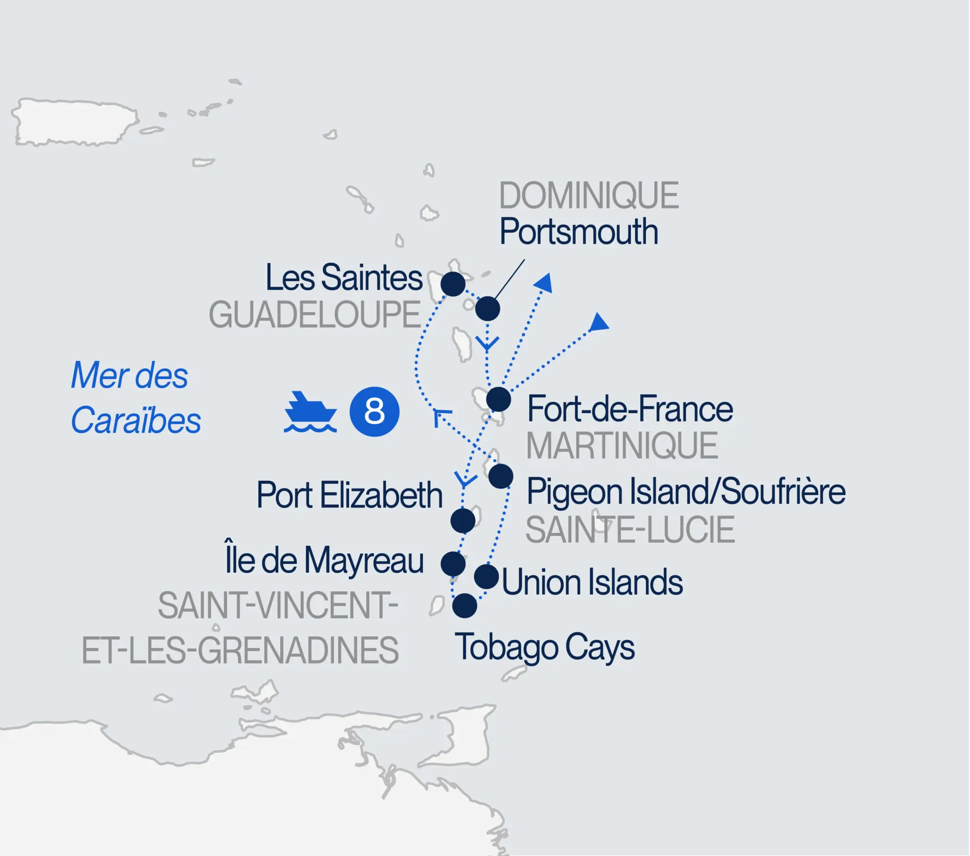 Ponant vous propose un itinéraire au cœur des îles les plus enchanteresses de la mer des Caraïbes. Embarquez à bord du Champlain pour une croisière de 9 jours entre longues plages de sable blanc et douceur de vivre à la créole.