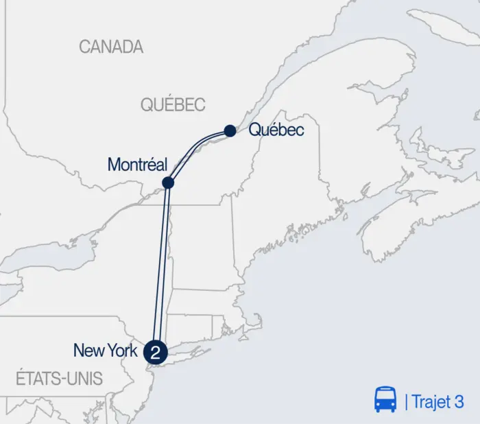 Avant-midi libre à New York. Activité libre proposée par votre guide : ascension au Top of the Rock ($). En fin de matinée, vous reprendrez la route de retour vers le Québec. Arrivée en soirée à Montréal puis Québec.