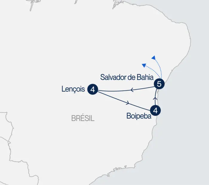 Bienvenue à Salvador de Bahia, coeur vibrant de la culture afro-brésilienne et ville de la mixité culturelle et du syncrétisme religieux. L’architecture colorée, la musique entraînante et la cuisine riche reflètent cette coexistence. Le candomblé, religion afro-brésilienne, joue un rôle central dans la vie sociale et culturelle, imprégnant l’atmosphère de la ville. Votre découverte débute par l’église de Bonfim. Ensuite, déambulez dans les rues pavées du Pelourinho et de Santo Antônio, le coeur historique coloré aux façades pastel, où les rythmes africains résonnent. Au cours de la journée, initiez-vous à la capoeira, cet art afro-brésilien unique, à mi-chemin entre danse et combat, né de la résistance des esclaves. Accompagné du bérimbau et des chants traditionnels, vivez l’énergie collective de cette pratique toujours vivante. (DJ)