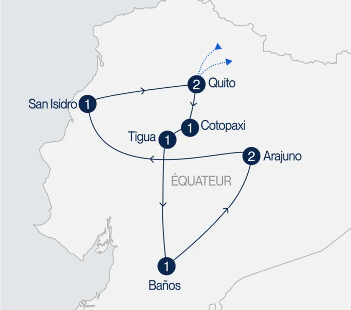 Accueil à l’aéroport de Quito par votre guide francophone. Transfert jusqu’à l’hôtel. Installation pour 2 nuits.