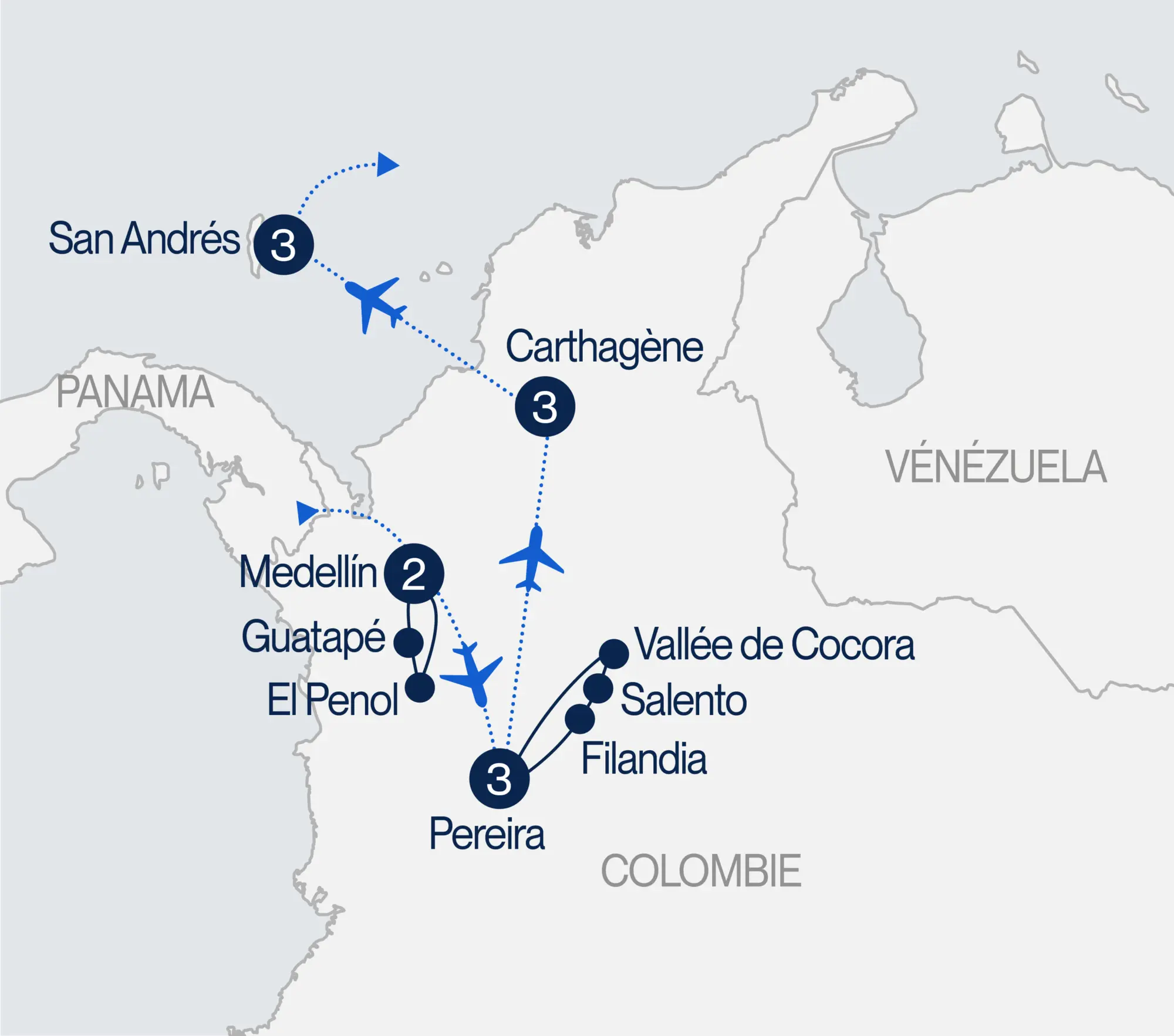 Vous quitterez les paysages montagneux de la région caféière pour prendre un vol à destination de la magnifique ville de Carthagène, joyau du littoral caribéen colombien. À votre arrivée, un transfert privé vous conduira à votre hôtel. Le reste de la journée est libre : flânez dans les rues coloniales, découvrez l’ambiance chaleureuse et colorée de laville, et laissez-vous envoûter par la brise tropicale et l’hospitalité caribéenne. (DJ)