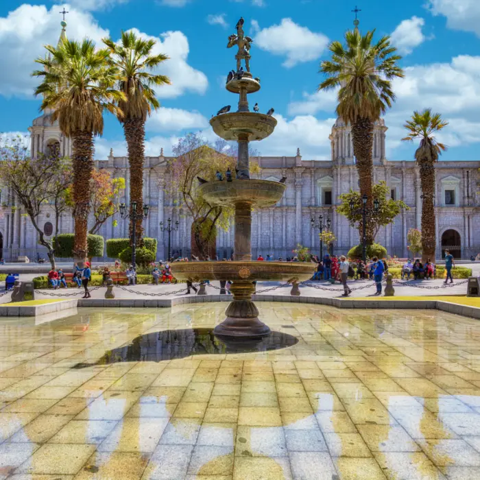 Ce matin, vous partirez découvrir Lima, la capitale du Pérou. Vous visiterez le centre historique et le couvent Santo Domingo. Dîner au restaurant El Bolivariano. Vous partirez ensuite à l’aéroport pour prendre votre vol destination Arequipa. Accueil et transfert à votre hôtel. (DJ, DN)