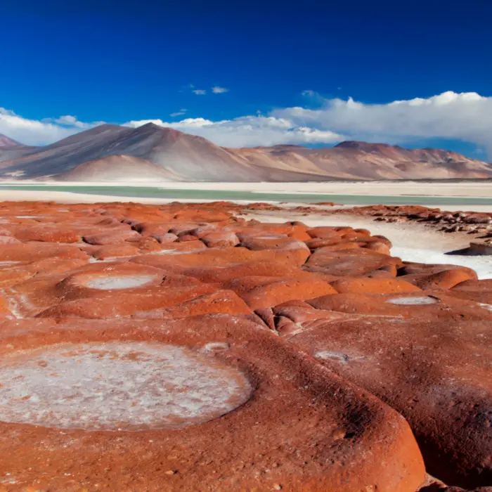 Départ en direction du poste-frontière de Hito Cajón, entre le Chili et la Bolivie. Après les formalités douanières, vous poursuivrez votre route en véhicule privé avec chauffeur hispanophone et guide francophone vers la Laguna Verde, située au pied du volcan Licancabur (5 916 m). Vous traverserez ensuite le surprenant désert de Dalí, aux formations rocheuses étranges rappelant les tableaux du célèbre peintre. Puis, vous arriverez à la Laguna Colorada, vaste lacaux teintes rouges spectaculaires. Dîner en plein air en cours d’excursion. En après-midi, continuation vers les Joyaux des Andes, une série de lagunes d’altitude (4 000–4 200 m) aux couleurs variées, bordées de volcans majestueux : Ramaditas, Honda, Chiar Khota, Hedionda et Cañapa. En fin de journée, arrivée à San Pedro de Quemez. Installation à votre hôtel et souper. (DJ, DN, S)