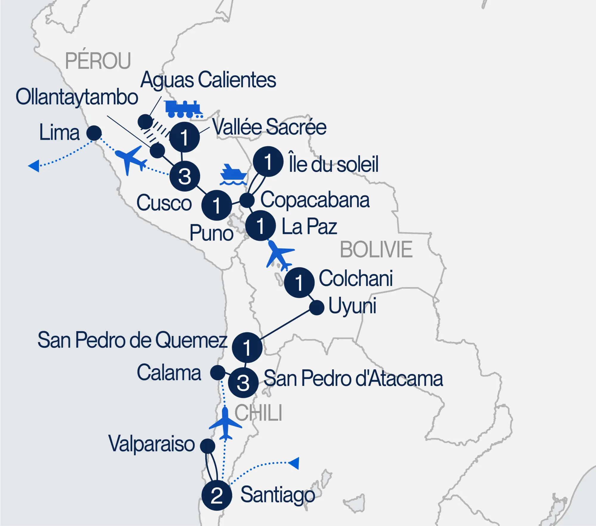 Départ de La Paz en bus vers Copacabana, puis traversée du détroit de Tiquina en petite embarcation. Dîner à Copacabana avant d’embarquer en bateau vers l’Île de la Lune pour découvrir le temple des Vierges du Soleil. Ensuite, continuation vers l’Île du Soleil. Installation à votre hébergement et souper. (DJ, DN, S)