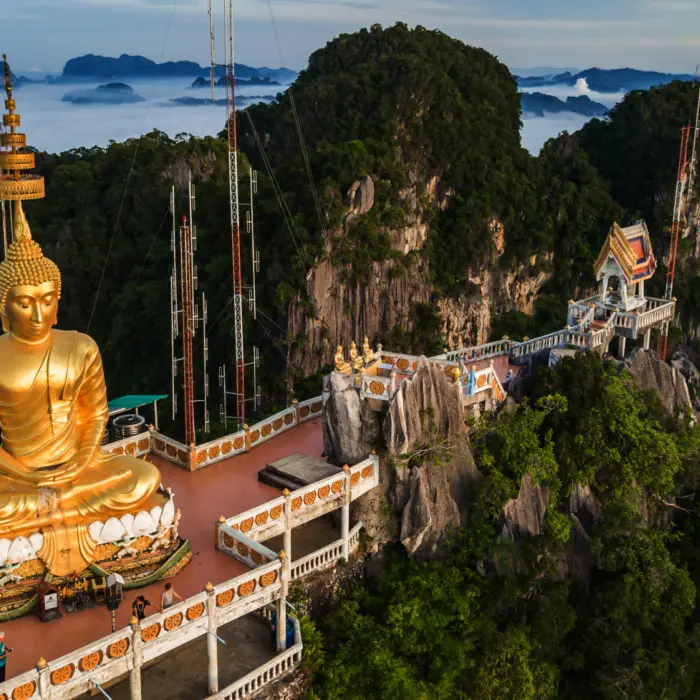 Ce matin, visite de la maison noire (Baan Dam Museum), qui présente une collection unique de structures sombres et mystérieuses offrant une expérience artistique stimulante et non conventionnelle. Vous poursuivrez vers le Wat Huay Pla Kang, souvent surnommé le temple rouge. Vous monterez à bord de l’imposante statue blanche de Guan Yin qui vous offrira une vue panoramique sur la campagne environnante. Dîner dans un restaurant local. En après-midi, vous découvrirez le temple bleu, (Wat Rong Suea Ten) et clôturerez la journée par la visite du temple blanc (Wat Rong Kun), qui représente la pureté et la sagesse bouddhiste. (DJ, DN)