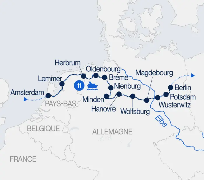 D’Amsterdam à Berlin, parcourez les canaux du Nord en croisière en passant par l’Elbe et la Havel. Vous découvrirez Amsterdam et ses célèbres canaux classés au patrimoine mondial de l’UNESCO avant de plonger au coeur de charmantes villes hollandaises. Hanovre, Magdebourg ou encore Potsdam, autant de villes qui vous feront apprécier l’éclectisme du patrimoine allemand. Votre séjour se terminera à Berlin, entre châteaux prestigieux et histoire tourmentée.