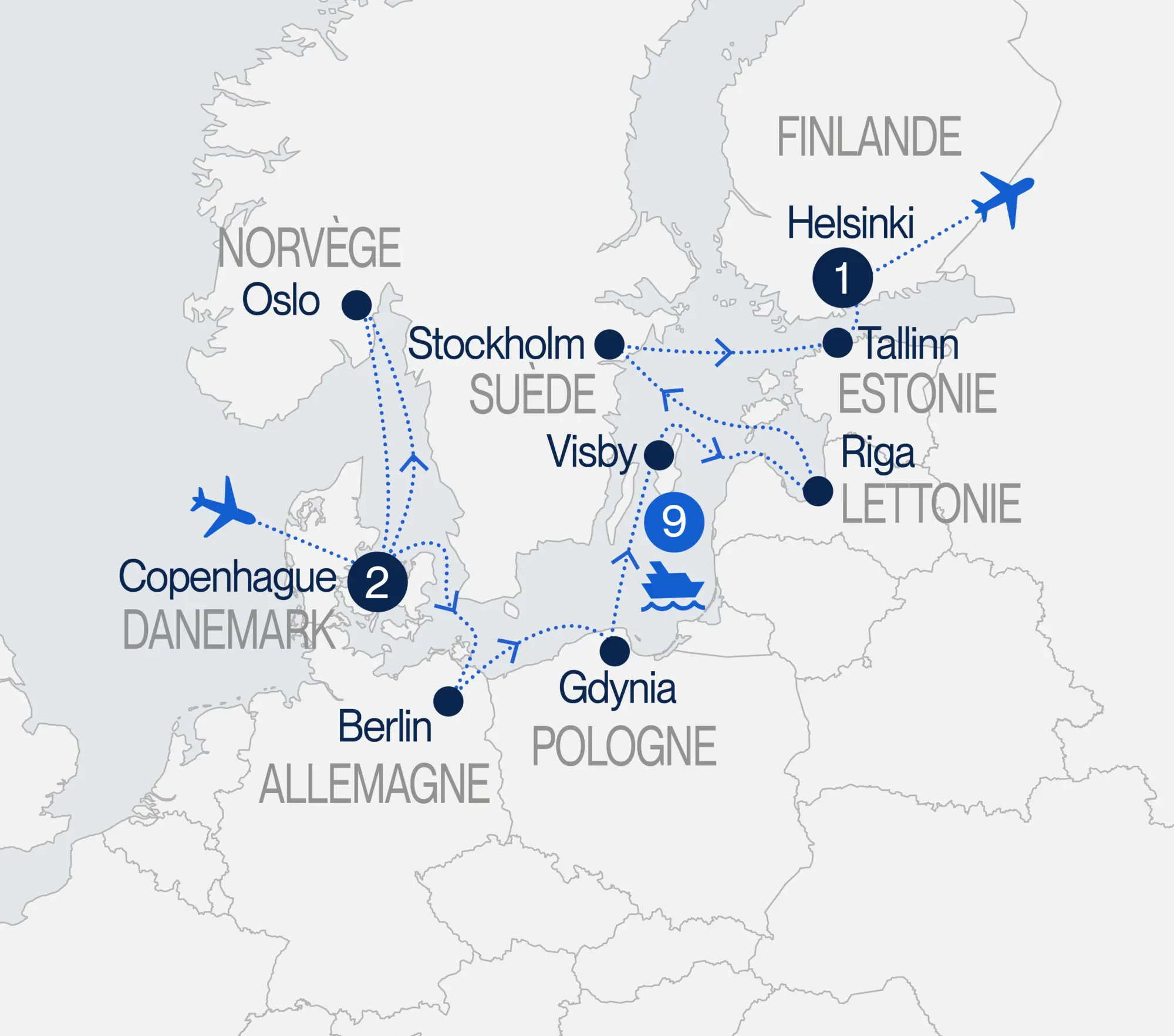 Embarquez pour une fascinante aventure nordique de Copenhague à Helsinki à bord du Norwegian Sun. Découvrez le charme des capitales scandinaves et baltes, où châteaux royaux, fjords majestueux et ruelles médiévales se succèdent dans un décor enchanteur. Entre histoire, culture et paysages à couper le souffle, ce voyage de 14 jours promet une immersion unique au cœur du raffinement et de la beauté du Nord.