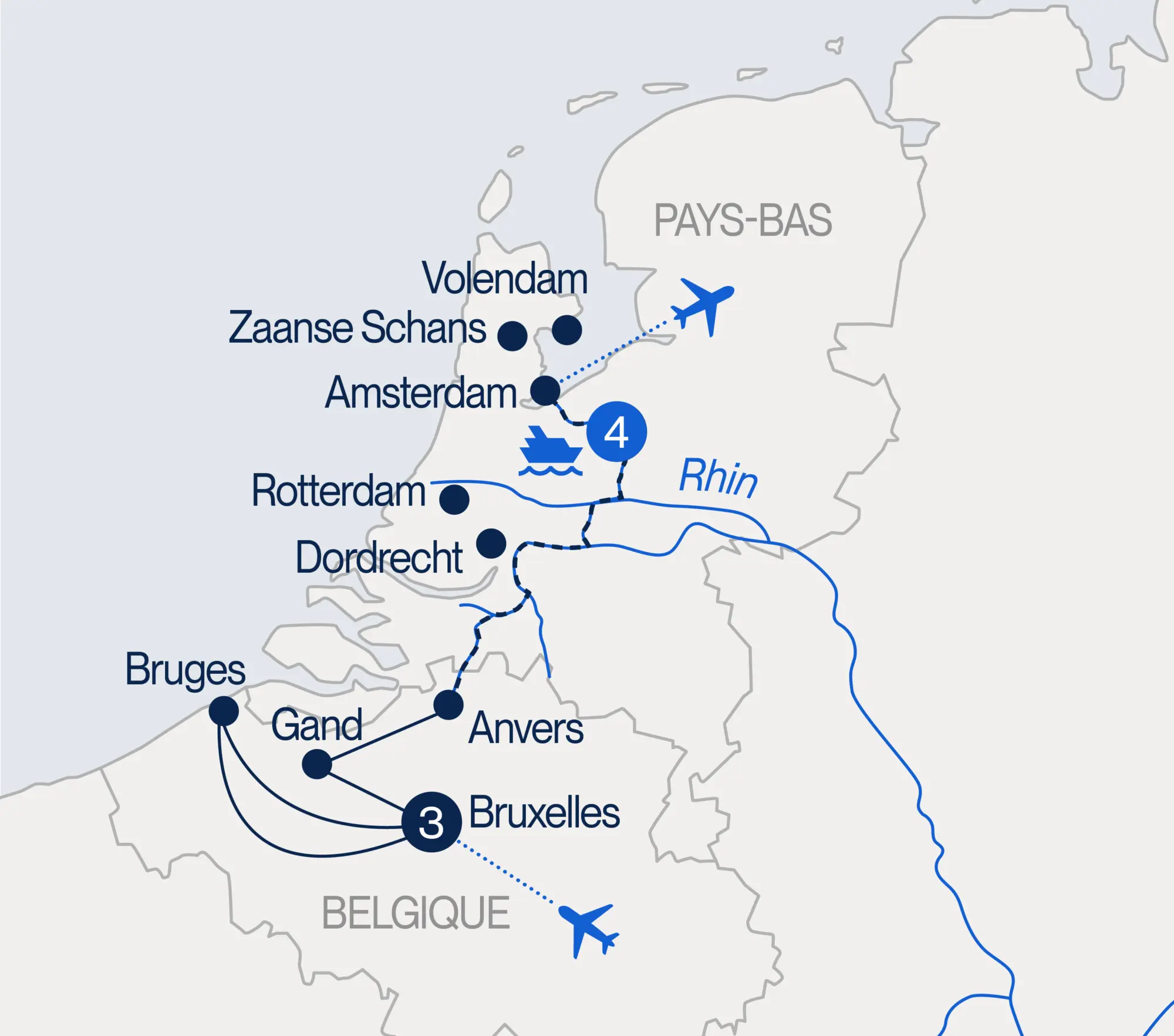 Rendez-vous à l’aéroport de Montréal afin d’y prendre votre vol vers Bruxelles; repas à bord.