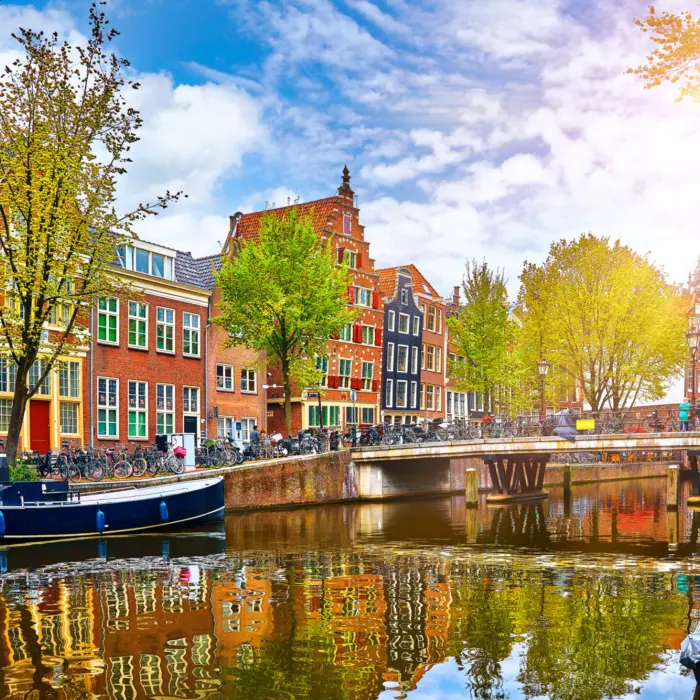Rendez-vous à l’aéroport de Montréal pour y prendre votre vol vers Amsterdam; repas à bord.