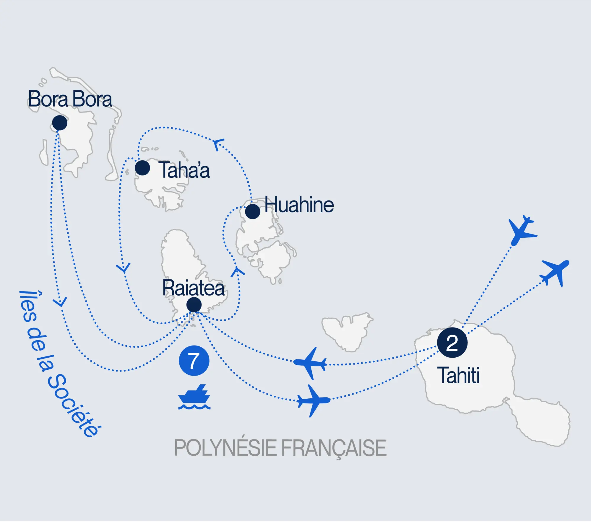 Découvrez les îles polynésiennes aux plages de sable blanc et aux lagons turquoise. Embarquez pour une navigation sereine de 9 nuits au cœur des îles Sous-le-Vent, de Bora Bora à Huahine, pour un dépaysement total et des escales très variées.