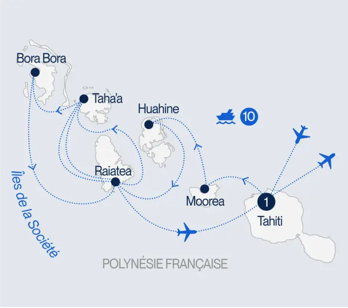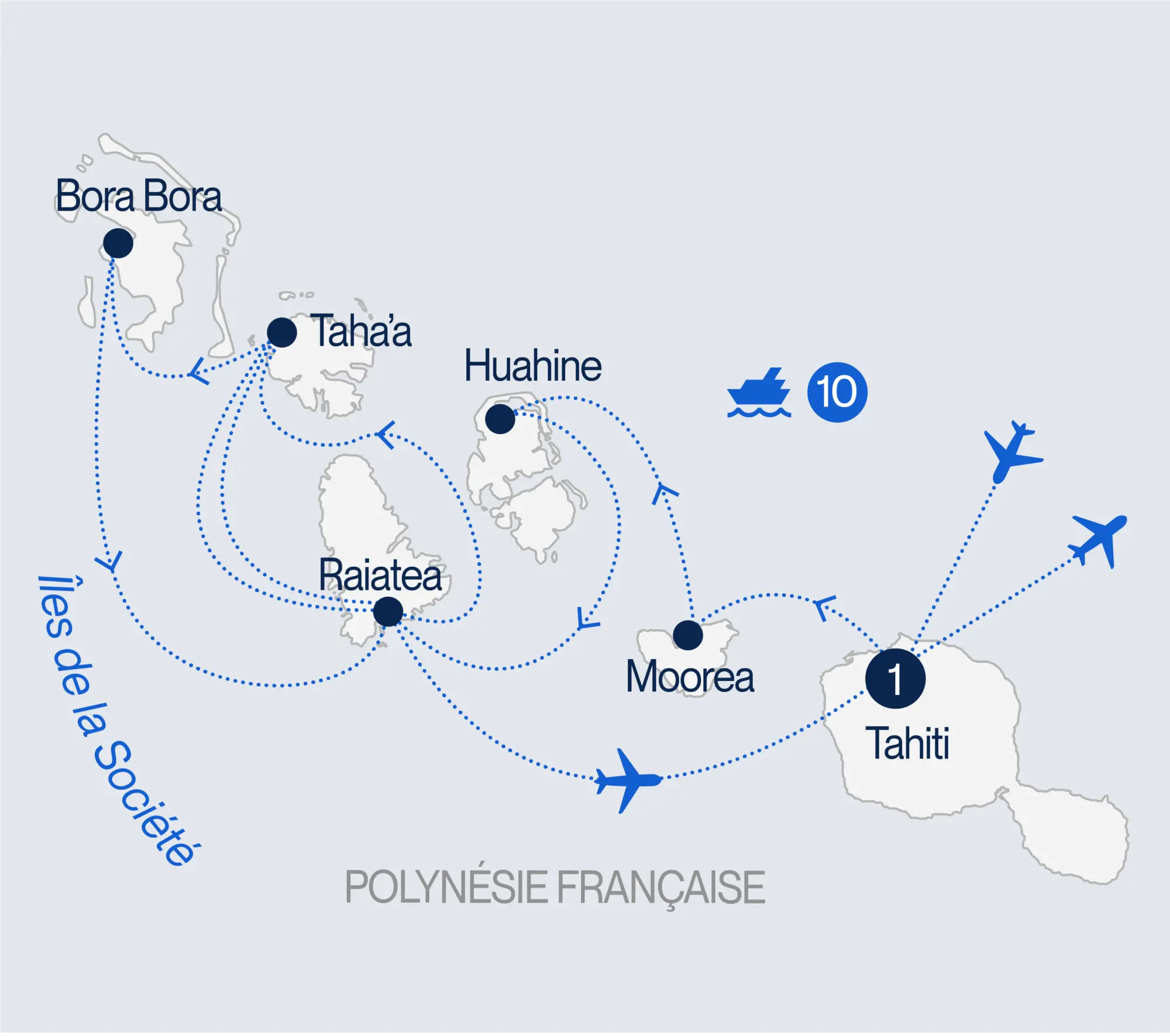 Partez à la découverte des îles les plus célèbres de Polynésie. De Tahiti à Bora Bora, en passant notamment par Moorea et Taha’a, vous visiterez les perles de l’archipel qui vous livreront leurs secrets et leurs splendeurs.