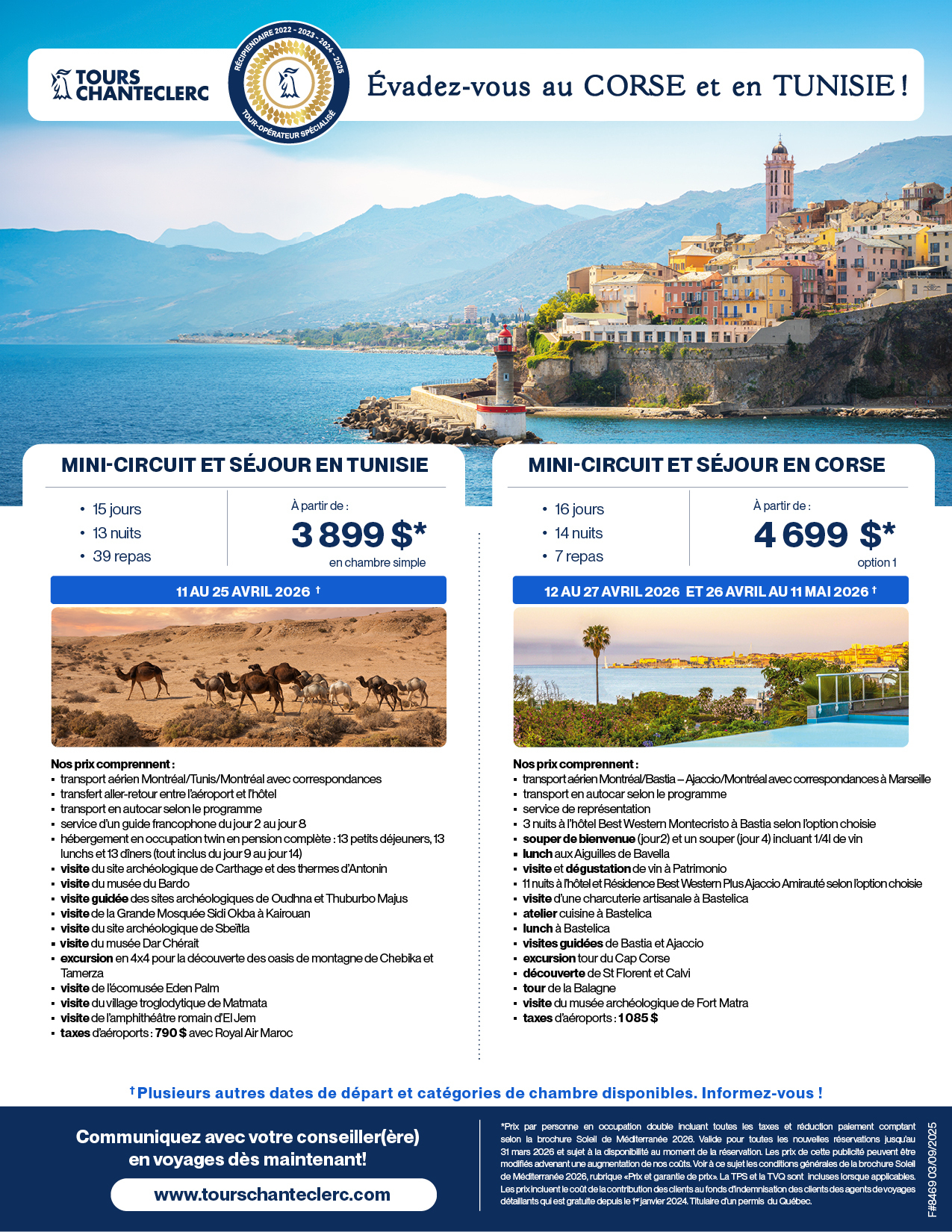 Mini-circuits & séjours en Corse et en Tunisie : PDF • JPG • À personnaliser